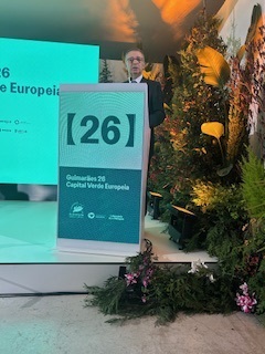 A sessão prosseguiu com a apresentação de Guimarães 26 – Capital Verde Europeia, momento dedicado à divulgação dos objetivos e das linhas orientadoras desta iniciativa.